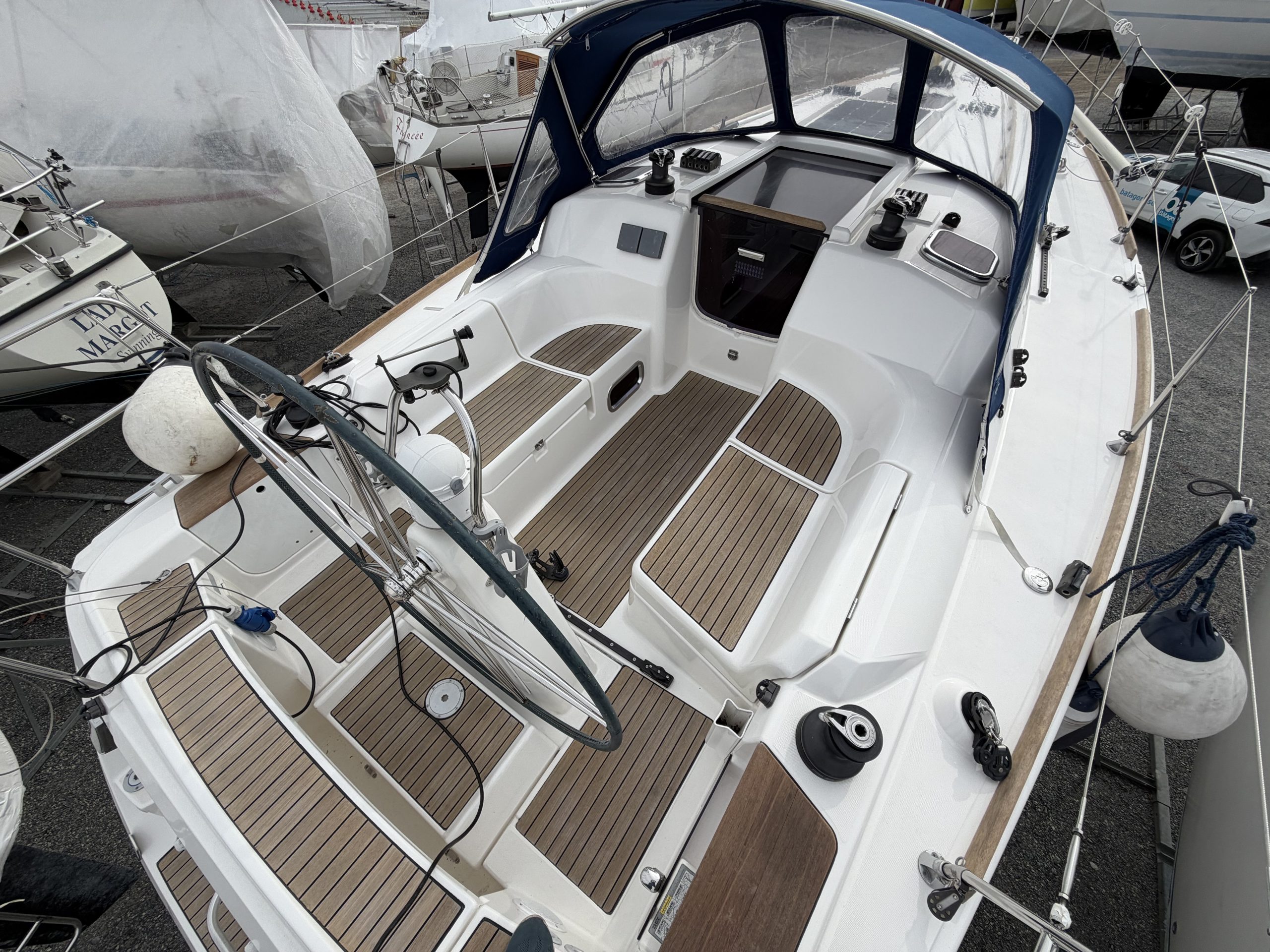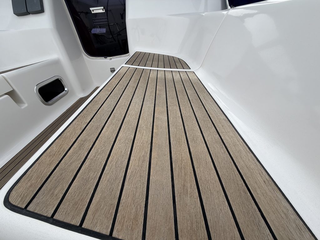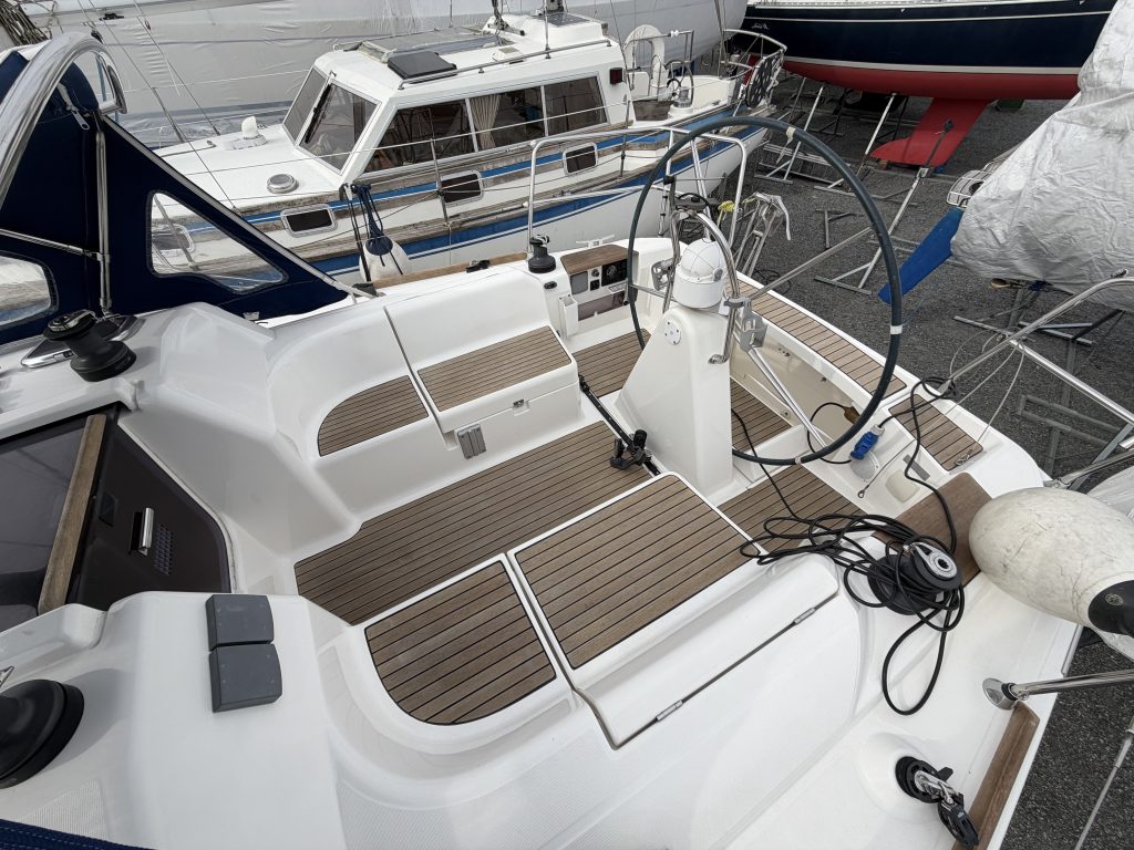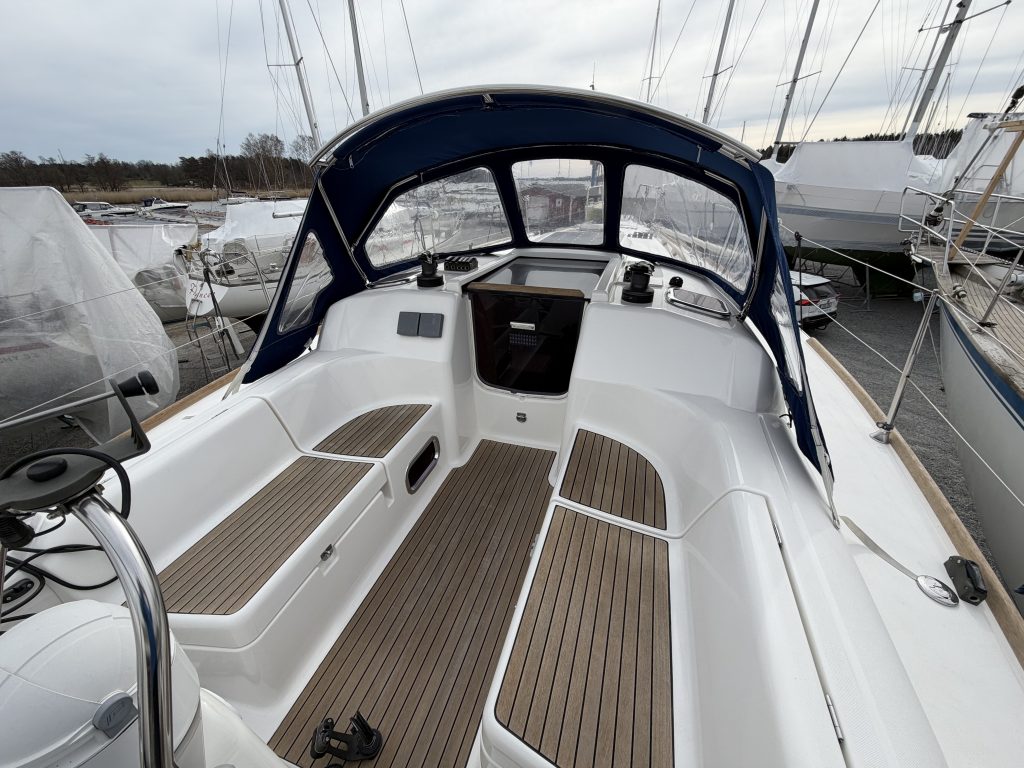 Båten hjärta är den rymliga sittbrunnen. Här ryms en besättning så väl under gång som i hamn. Väl skyddad bakom en sprayhood om vädret är lite sämre. Alla trimtampar sitter på rätt ställe för en aktiv och bekväm segling. Alla beslag och övrig utrustning kommer från kända leverantörer och har hög kvalité.