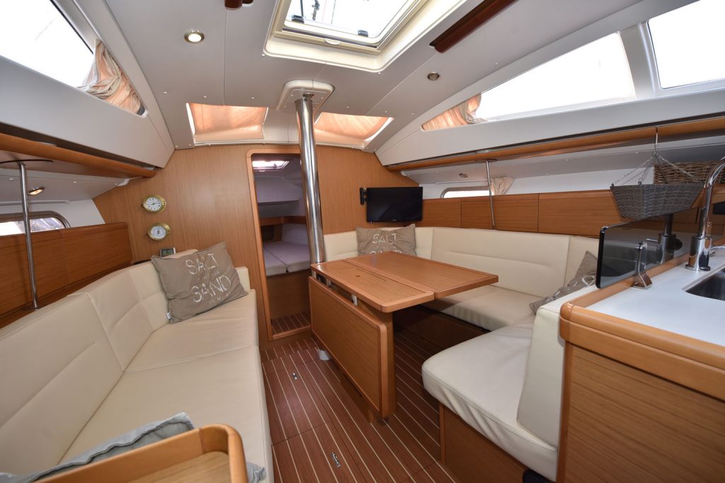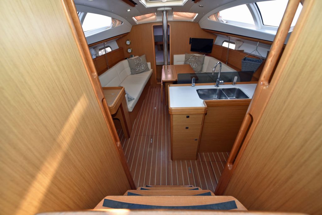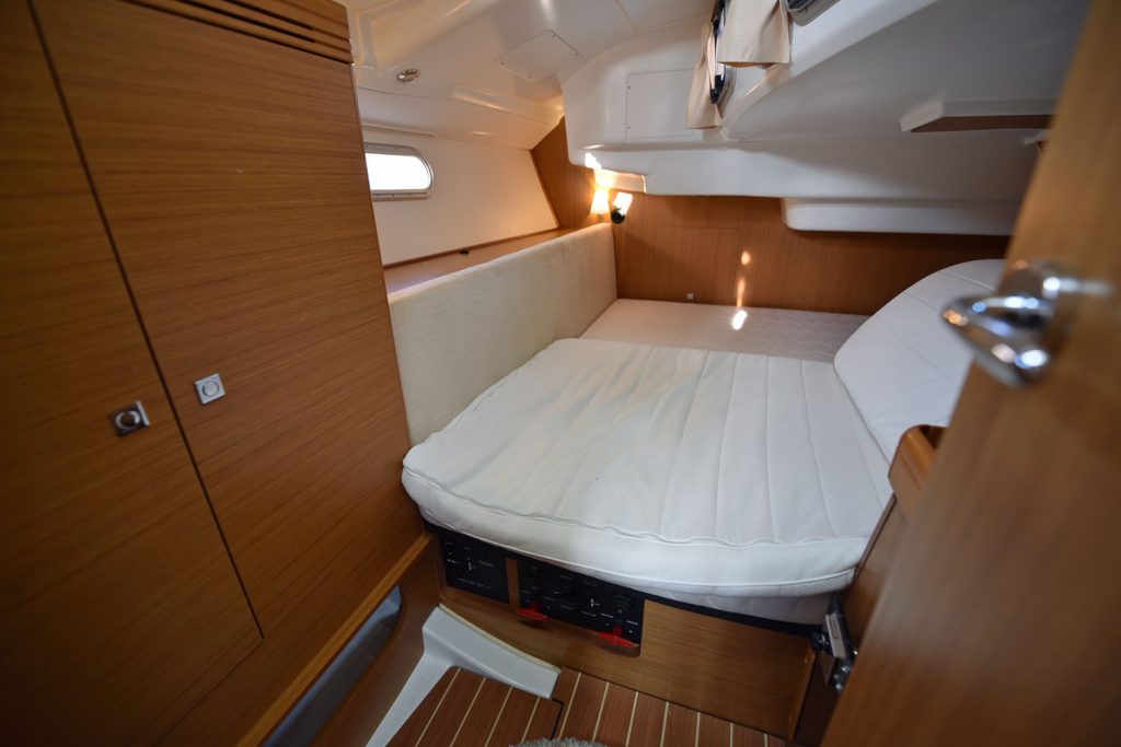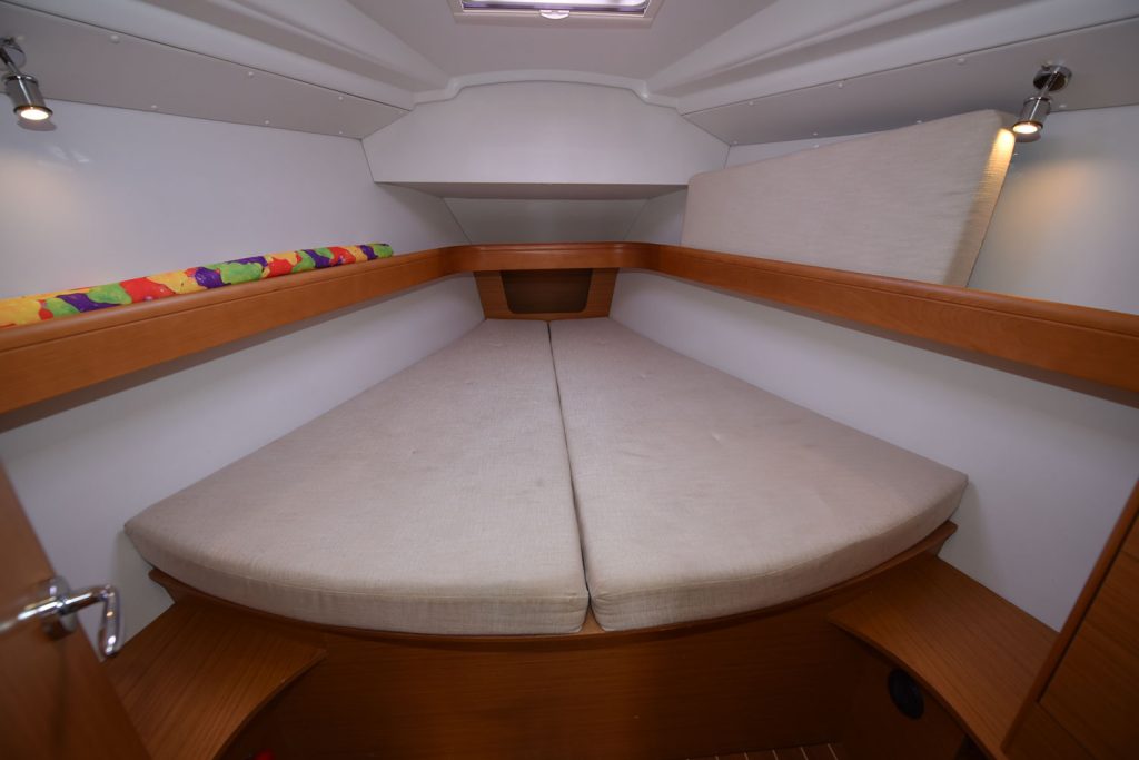 En fransk läckerbit, en perfekt båt för paret som unnar sig lyxen att kunna sova lika bekvämt som hemma, dessutom finns möjligheter att ha vänner med, man kan även bädda en extrakoj i salongen.
