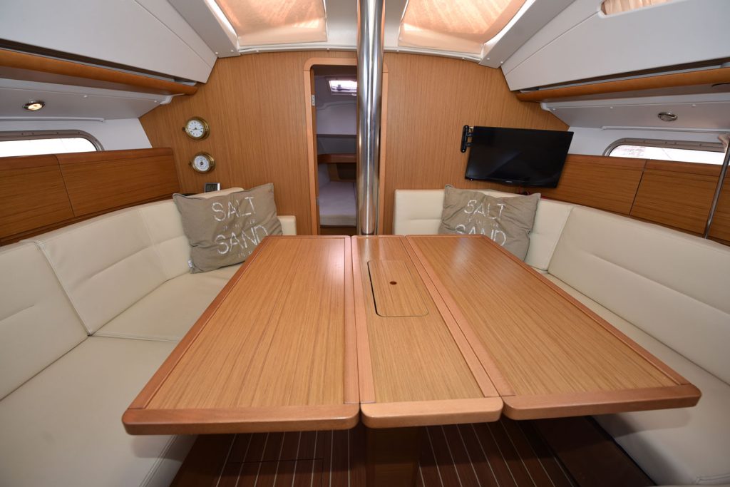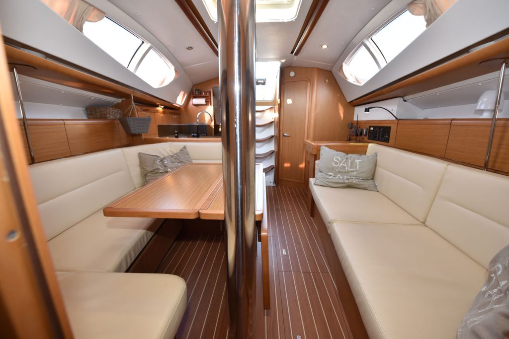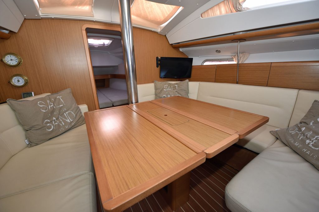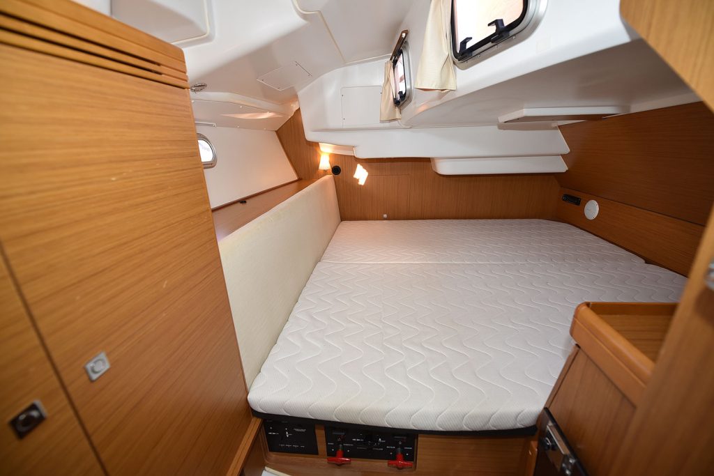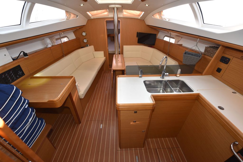 En fransk läckerbit, en perfekt båt för paret som unnar sig lyxen att kunna sova lika bekvämt som hemma, dessutom finns möjligheter att ha vänner med, man kan även bädda en extrakoj i salongen.