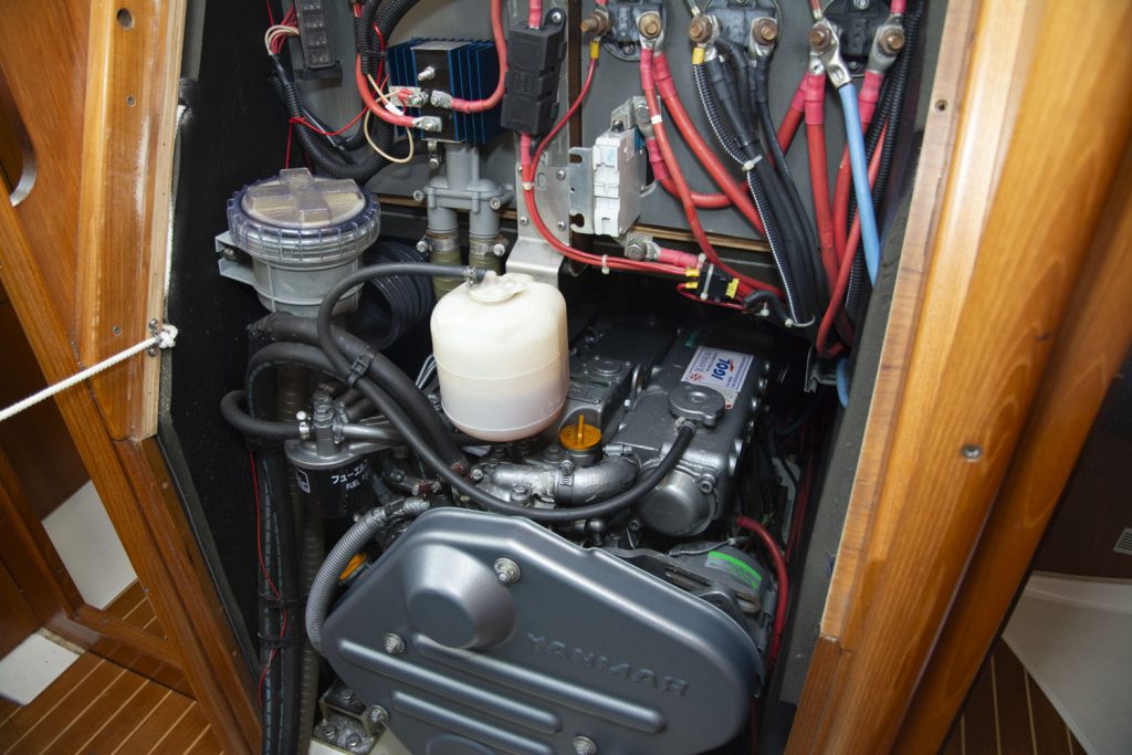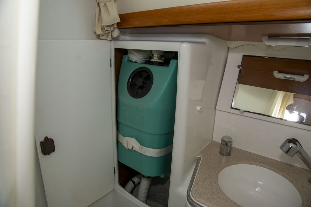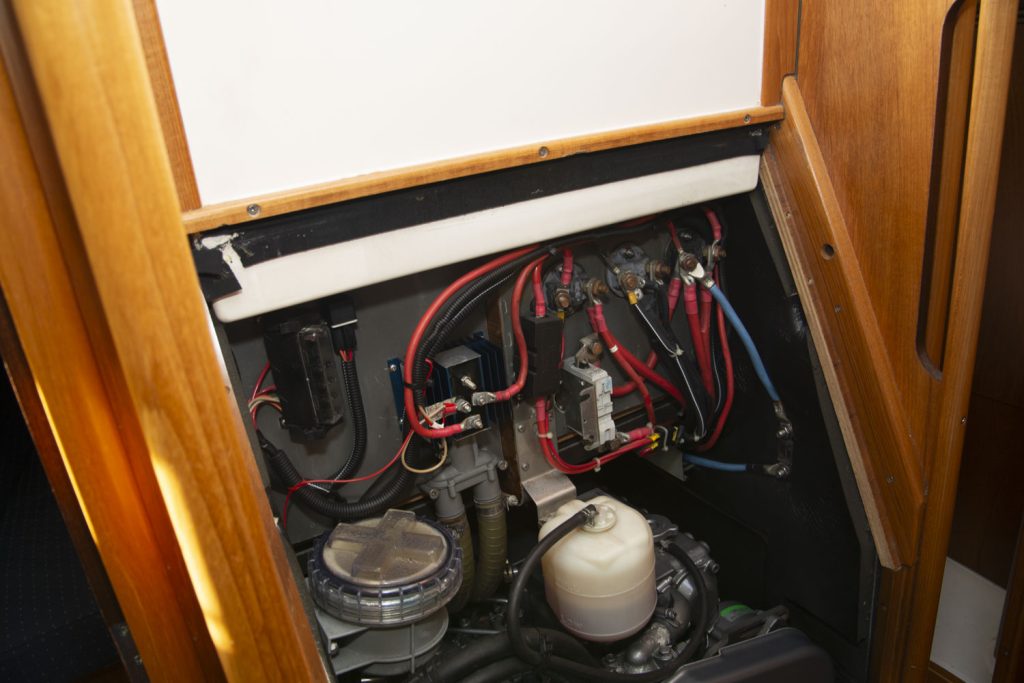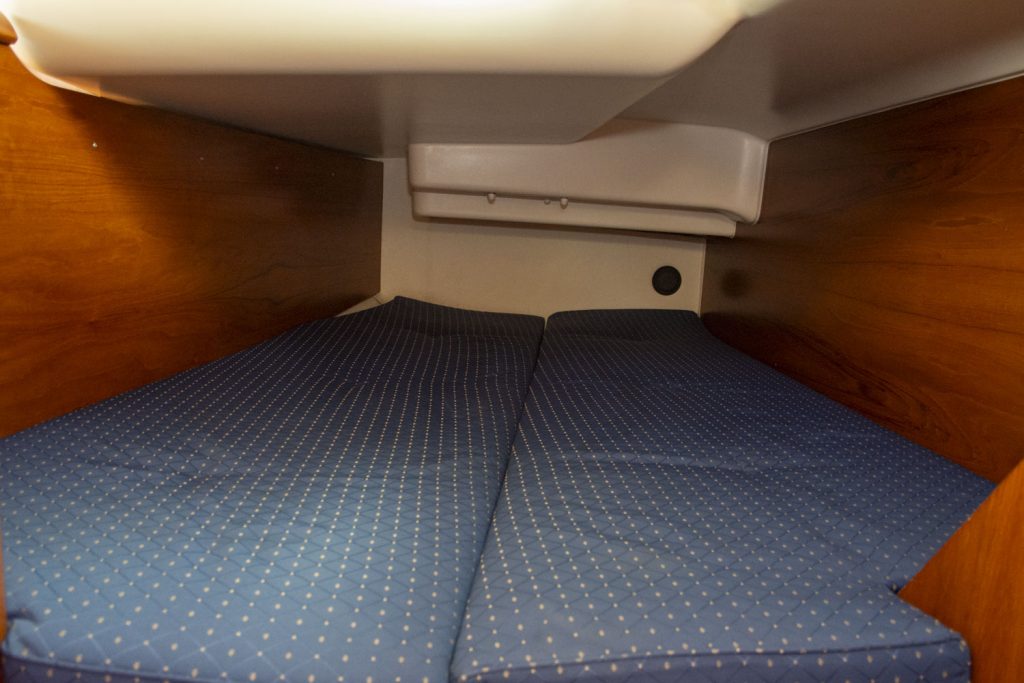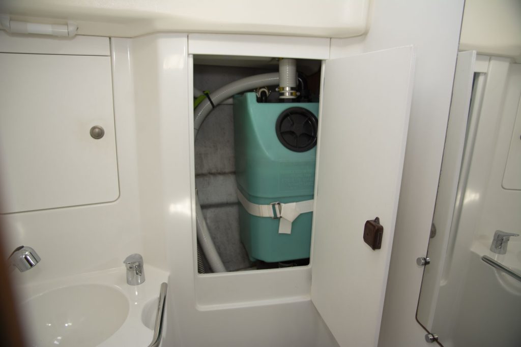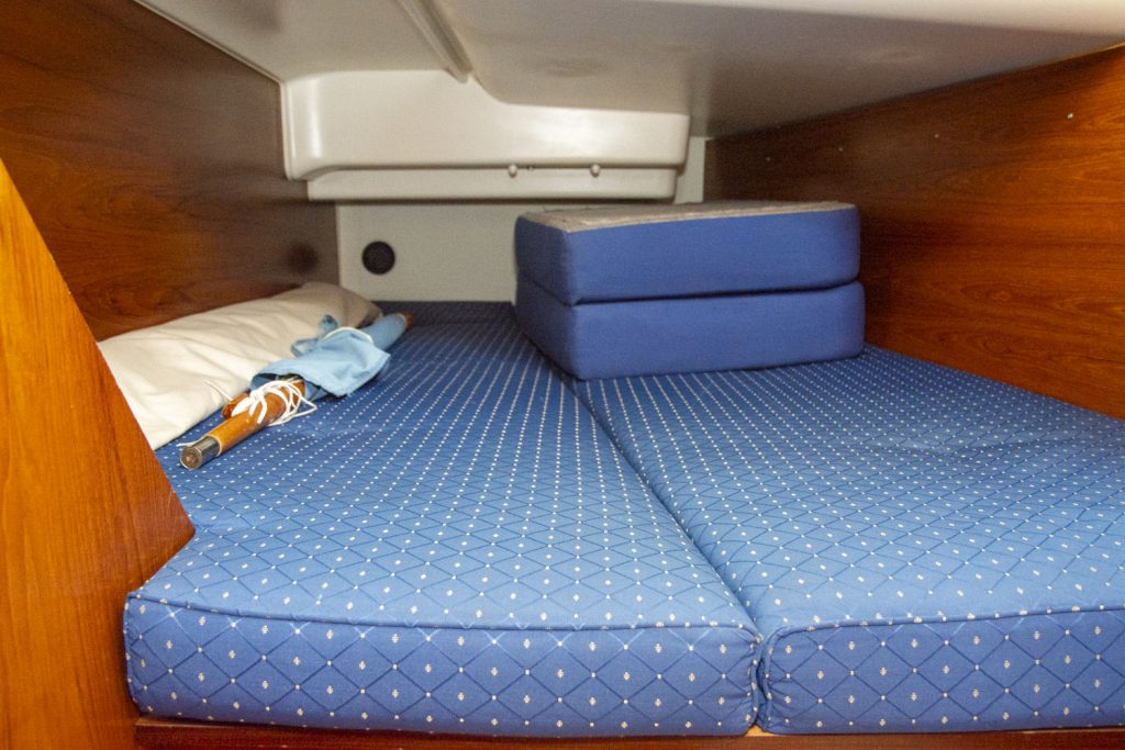 I fören har denna båt ägarhytten med en stor centrumbädd samt en ståhöjd på 187 cm. Här finns också den främre toaletten. Förlig och akterlig toalett har däcktömning. Båten har en utrustningsnivå som uppfyller alla behov. Allt från ett stor Lithium batteribank, ankarspel i för och akter, bogpropeller, fina segel och kapell samt dusch. Läs igenom den kompletta utrustningslistan, pdf.