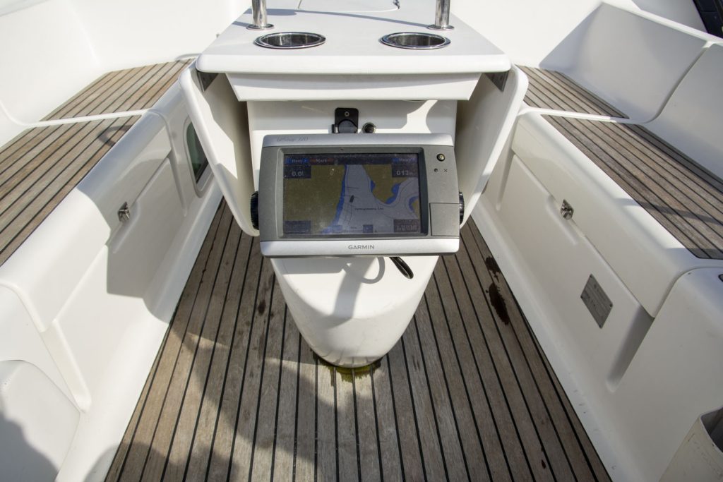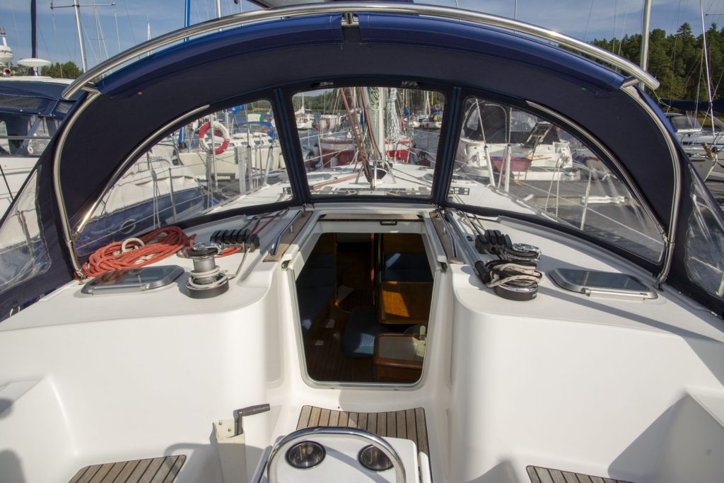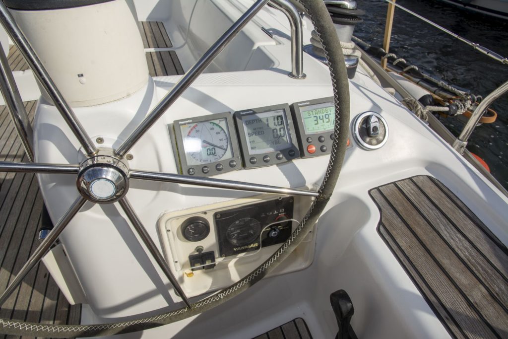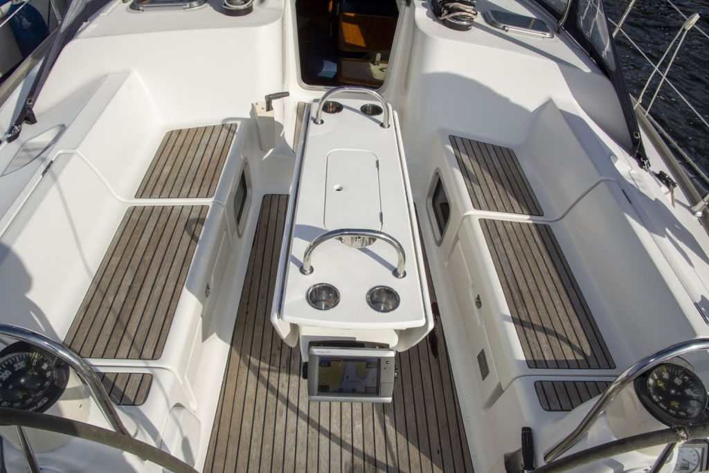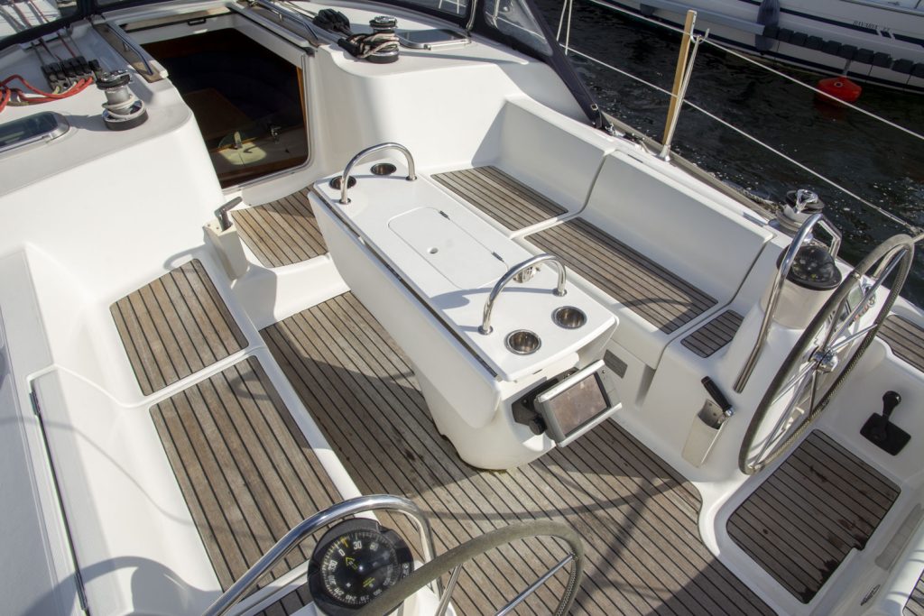 Båtens hjärta, sittbrunnen har dubbla rattar och ett stadigt fast bord. En social sittbrunn som fungerar lysande både under gång och i hamn. Segel och kapell kommer från UK Sailmakers och är i bra skick. Ett ypperligt tillfälle att få en väldigt bra segelbåt i 40-fotsklassen. Sommar och sol, i öst eller väst, chans till tursegling när det är som bäst!