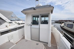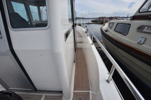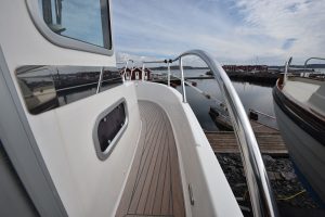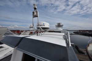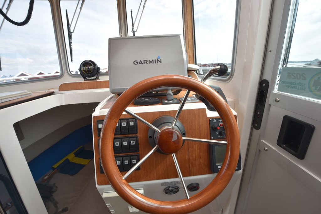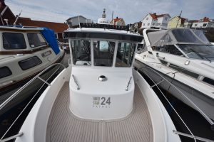 Nordstar 24 Patrol utrustad för säkra transporter på havet, bra belysning för pendling i höstmörker vid tilläggningar, samt radar, Mente Marin trimplan och bogpropeller. AIS integrerad i plottern från Garmin.
